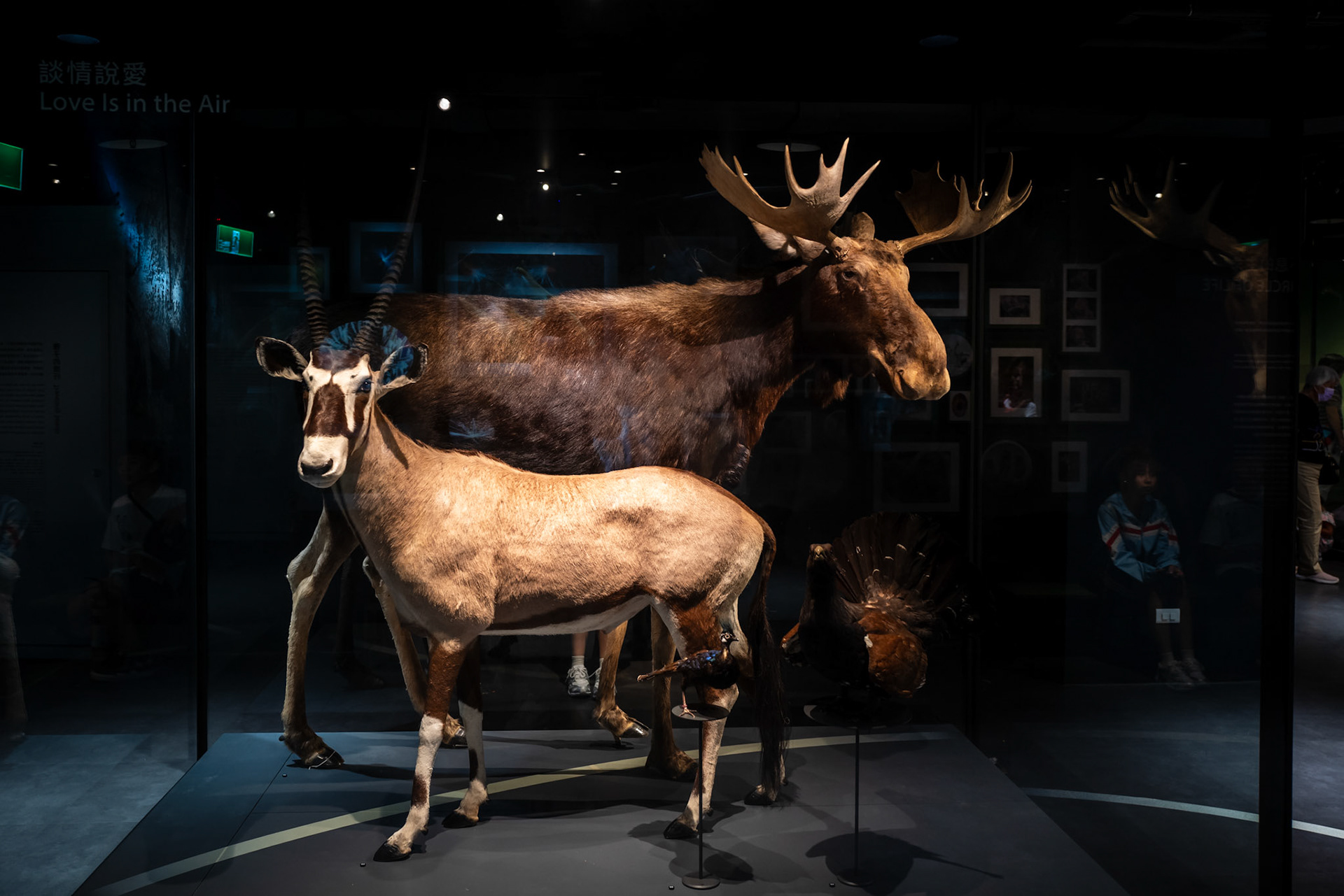 "The Red House, a historic red brick octagonal building in the Ximending district of Taipei, Taiwan, illuminated at night with two people standing near the entrance.